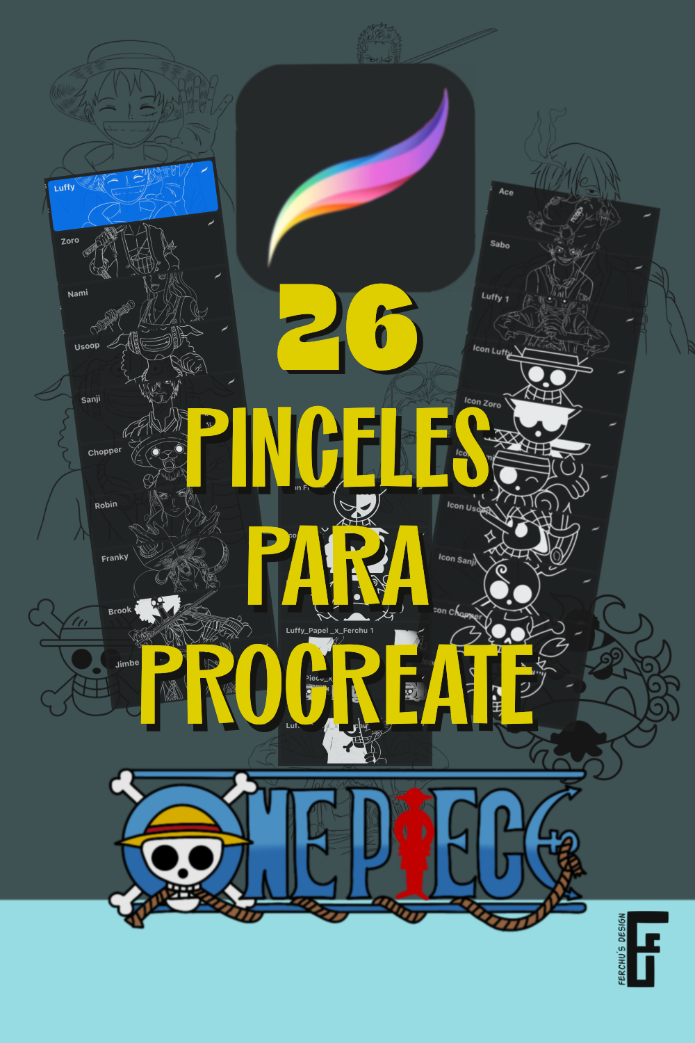 26 Pinceles One Piece / One Piece Brushes - PROCREATE